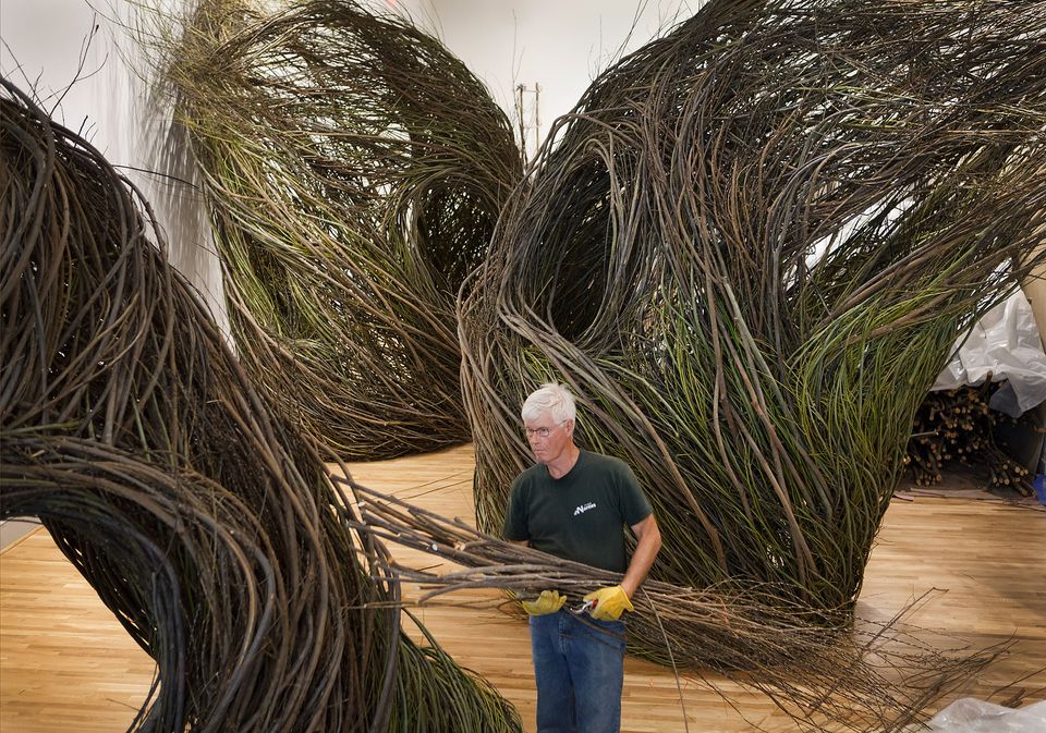 Cria esculturas monumentais com galhos e cipós. Suas instalações habitáveis, como Na Hale ‘Eo Waiawi (Havaí), lembram ninhos ou refúgios naturais e estão espalhadas por jardins botânicos e museus.