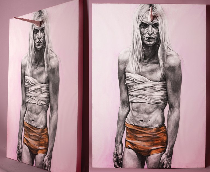 O projeto que vamos apresentar chama-se “Damaged People” e é um de seus projetos mais críticos. Consiste em seis desenhos feitos em 2D, mas dão a impressão de serem 3D devido aos elementos que ela utiliza. Esses desenhos são de pessoas semi-nuas, modelos, quase famosos, e pessoas da vida real, que é o grande foco da artista. Retratar pessoas comuns, artistas e modelos como todos tendo problemas e imperfeições, como se todos pudessem ser “estragados” independente de quem forem.