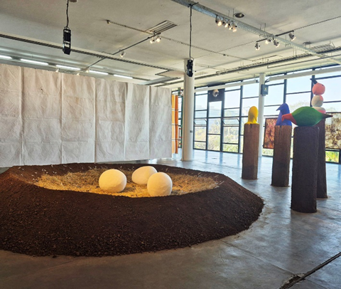 Frequências de chegadas e pertencimentos nos convida a olhar para o solo, às potencialidades da terra e às vibrações que sustentam a vida. Pedras, raízes e pigmentos naturais, trabalhos com argila ou terra, lembram que pertencer é escutar, reconhecer e sentir a pulsação do mundo que nos sustenta. As obras de artistas que exploram essa relação nos conectam ao chão, à memória ancestral e às comunidades, fazendo que o espectador perceba o entrelaçamento do corpo, do lugar e da história