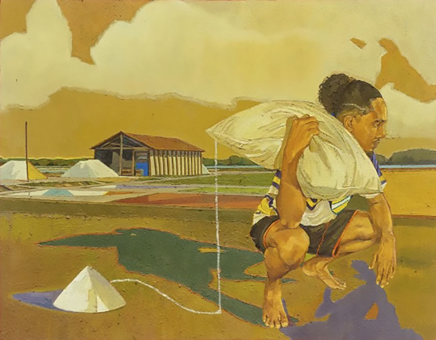 Originário de Cabo Frio, Ian resgata em sua produção pictórica a paisagem de sua terra natal, transformando o sal — elemento abundante das salinas — em metáfora do esforço cotidiano e do fluxo criativo. Suas obras inéditas evocam a ideia de um “Estreito”: espaço simbólico entre o desejo e a realidade, onde o sonho de uma terra promissora frequentemente se choca com a solidão e o desencanto.