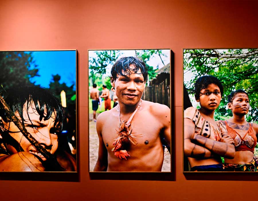 Na sequência, a exposição propõe um processo artístico e curatorial de ocupação do Centro Cultural Sesc Quitandinha com instalações, gravuras, fotografias, pinturas, ilustrações e esculturas, trazendo múltiplas linguagens que afirmam a força da diversidade como estratégia de resistência dos povos indígenas.
