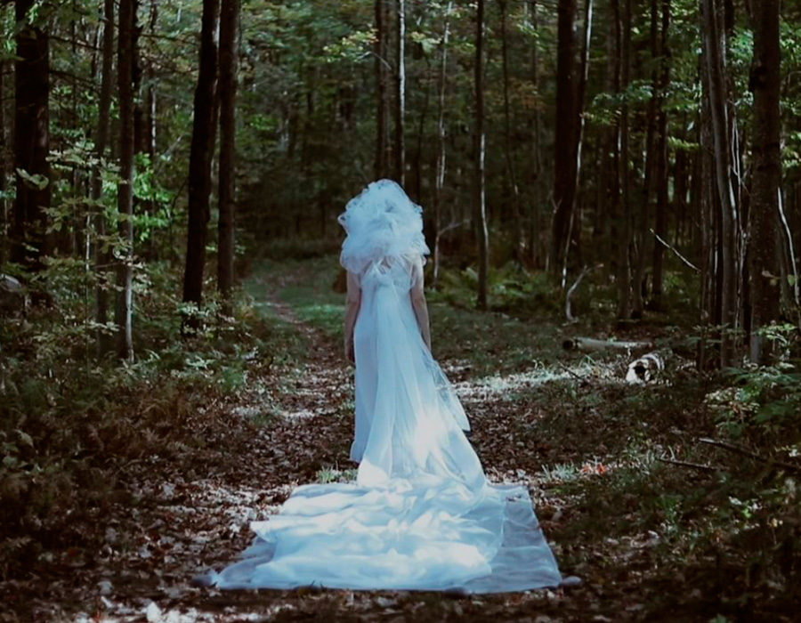 Essa dimensão do acúmulo, do esforço e da dissolução também atravessa o vídeo Sal, apresentado por meio de um monóculo instalado na parede. Dispositivo óptico historicamente associado à observação íntima de imagens, como fotografias familiares e registros do passado, o monóculo cria uma experiência concentrada e silenciosa, convidando o visitante a se aproximar do objeto e do conteúdo que ele abriga. No vídeo, a artista caminha pelo mar à noite, iluminada apenas pela luz da lua, entrando na água até desaparecer ao fundo. A ação aborda a dissolução progressiva do corpo feminino, acionando noções de apagamento, silêncio e transmutação. Ao olhar pelo monóculo, o espectador adentra um universo escuro e restrito, acompanhando de perto o desaparecimento do corpo na escuridão, o que intensifica a imersão na performance e reforça a sensação de isolamento e introspecção.