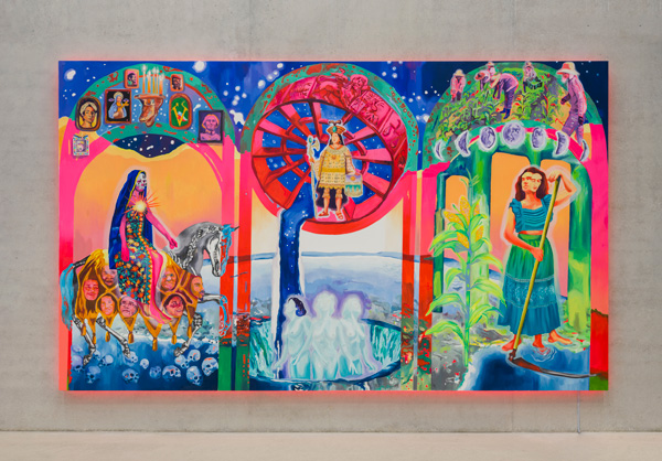 Produzida pelo Instituto Artistas Latinas, a mostra no Museu do Amanhã reúne trabalhos de Alice Yura, Azizi Cypriano, Guilhermina Augusti, Jeane Terra, Luna Bastos, Marcela Cantuária, Mariana Rocha, Rafaela Kennedy, Roberta Holiday, Rosana Paulino, Suzana Queiroga e Thais Iroko, Marilyn Boror Bor (Guatemala) e Natália Forcada (Argentina). Pinturas, esculturas, fotografias e videoarte remetem a histórias, memórias e saberes transmitidos por mulheres que enfrentam e rompem as barreiras que tentaram limitar suas existências. O maior trabalho da exposição é “O sonho da América Latina”, de Marcela Cantuária, uma pintura de 5m X 3m.