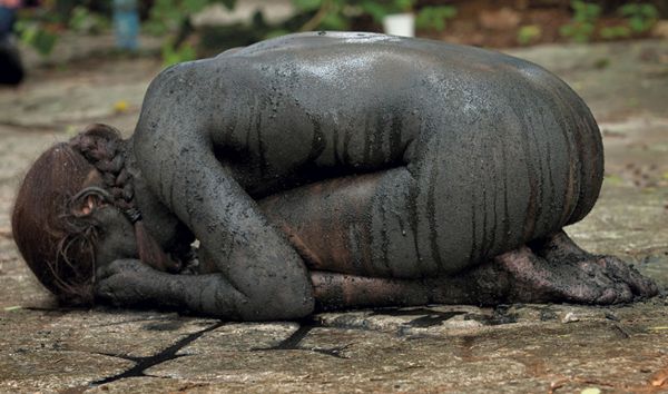 Um exemplo expressivo é o trabalho da artista maia-quiché Regina José Galindo, que, embora transite pela performance e pela instalação, mantém em sua obra um diálogo profundo com questões de território, violência e memória coletiva. Em Quiebrantahuesos (2022), Galindo usa o próprio corpo como metáfora de resistência e denúncia, evocando a força de narrativas ancestrais em contextos contemporâneos de opressão.