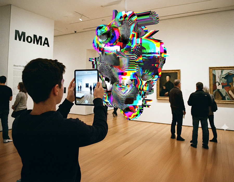 A grande estratégia do Artista Ocupador em 2026 é o uso do Geofencing (cercas virtuais) e da Realidade Aumentada (RA). Imagine que um grande colecionador caminha pela 5ª Avenida em direção ao MoMA. Ao cruzar o perímetro do museu, seu dispositivo sinaliza uma obra monumental que interage com a fachada do prédio. A obra não está no acervo oficial, mas ela está lá, ocupando o espaço simbólico da instituição.